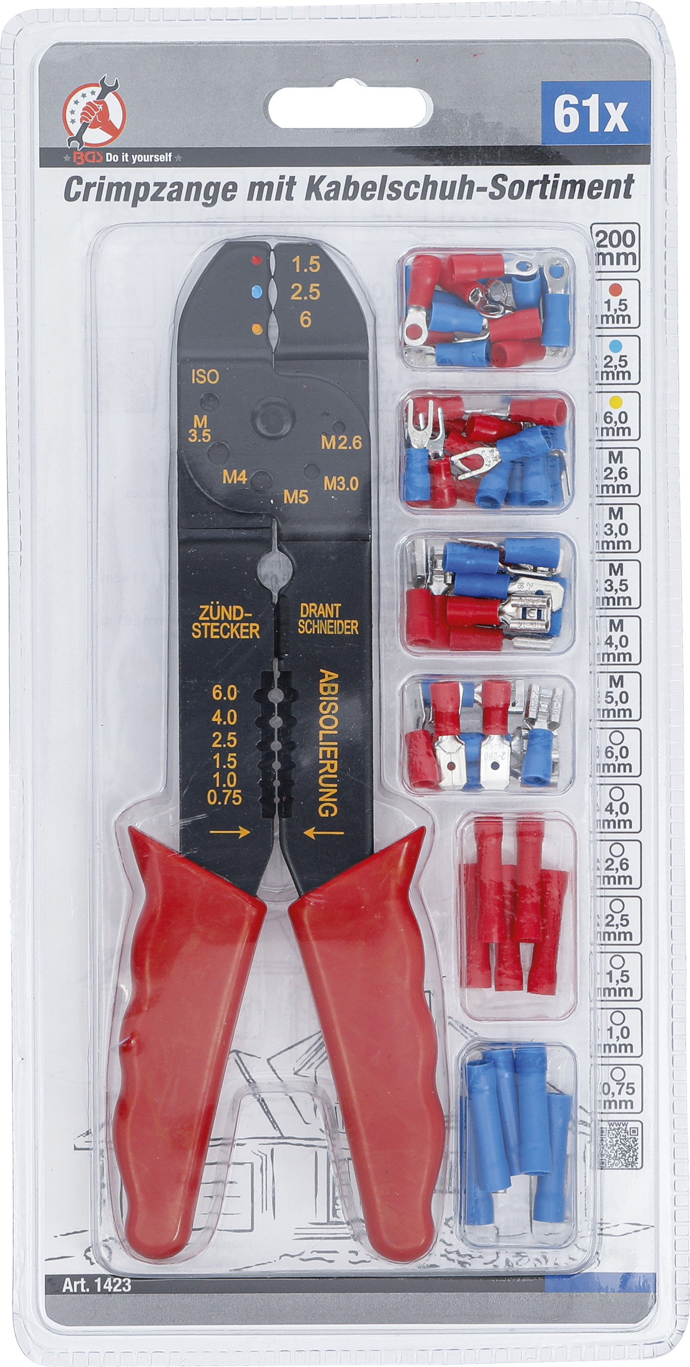 BGS 1423 Crimpzange mit Kabelschuh-Sortiment | 200 mm | 61-tlg.
