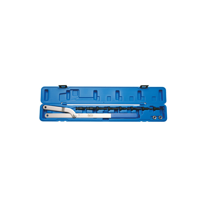 - mit 4 Paar austauschbaren Haltezapfen, Ø 6 -10 mm, 8 - 11 mm, 10 - 12 mm, 11 - 16 mm, daher für nahezu alle Nockenwellenräder geeignet.