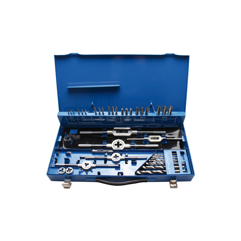 M3 x 0,5 - M4 x 0,7 - M5 x 0,8 - M6 x 1,0 - M8 x 1,25 - M10 x 1,5 - M12 x 1,75 - 7 Schneideisen (DIN 223)