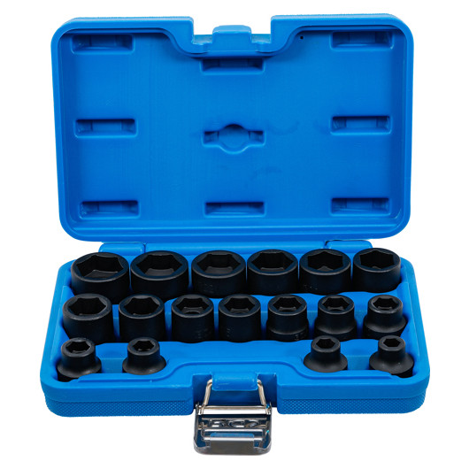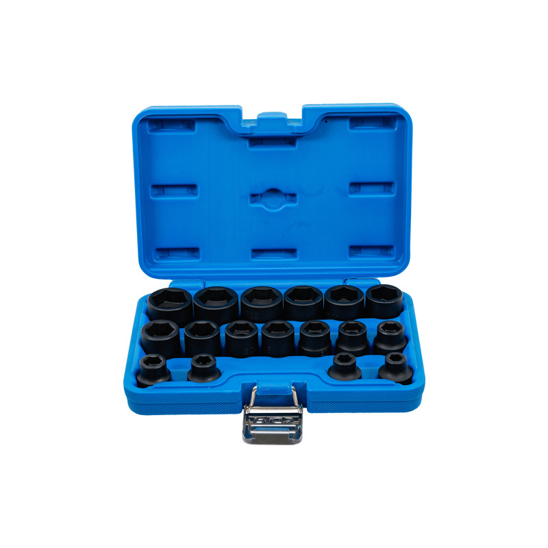 BGS 9286 Kraft-Steckschlüssel-Einsatz-Satz Sechskant, extra flach | Antrieb Innenvierkant 12,5 mm (1/2"") | SW 8 - 24 mm | 17-tlg.