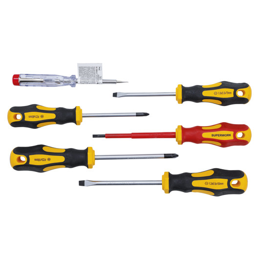 - 1 Schraubendreher, Schlitz SL 6,5 mm, Klingenlänge: 100 mm