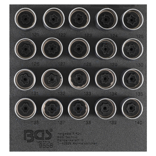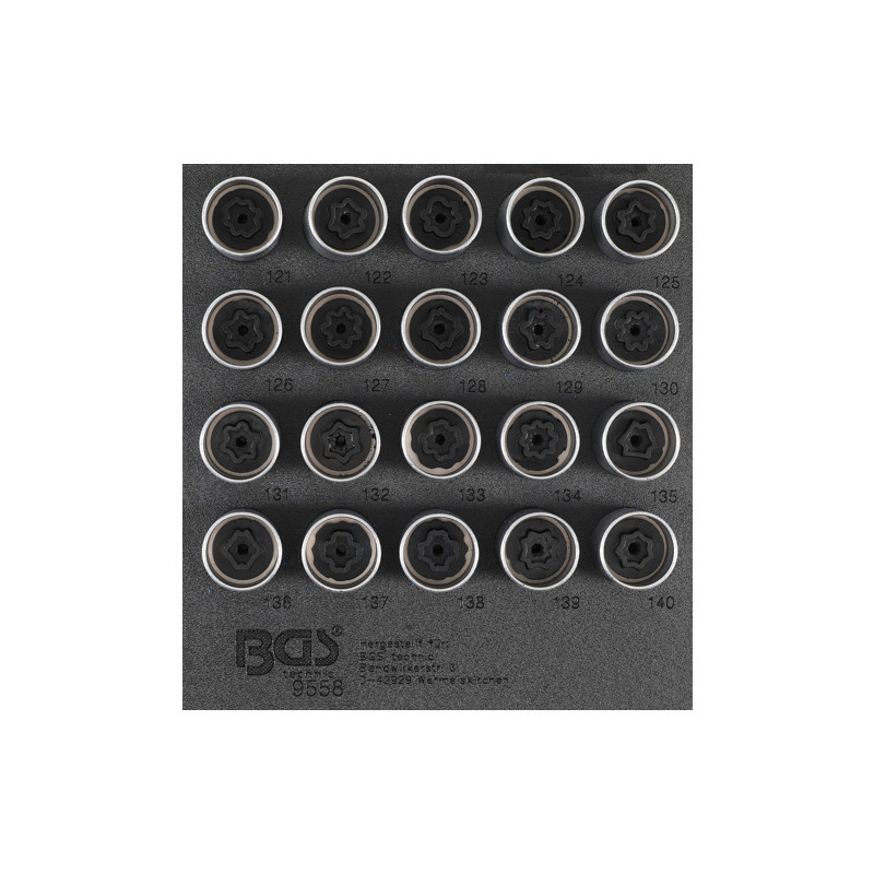 BGS 9558 Werkstattwageneinlage 1/6: Felgenschloss-Werkzeug-Satz für Opel (Typ C) | 20-tlg.