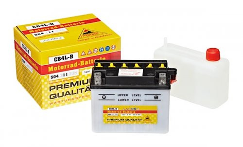 Panther Premium Motorradbatterie 12V 4Ah, die klassische Bleisäure-Nassbatterie. Die Panther Premium Motorradbatterien werden von uns mit Säurepack und Anleitung in attraktiver Verkaufskartonage geliefert.