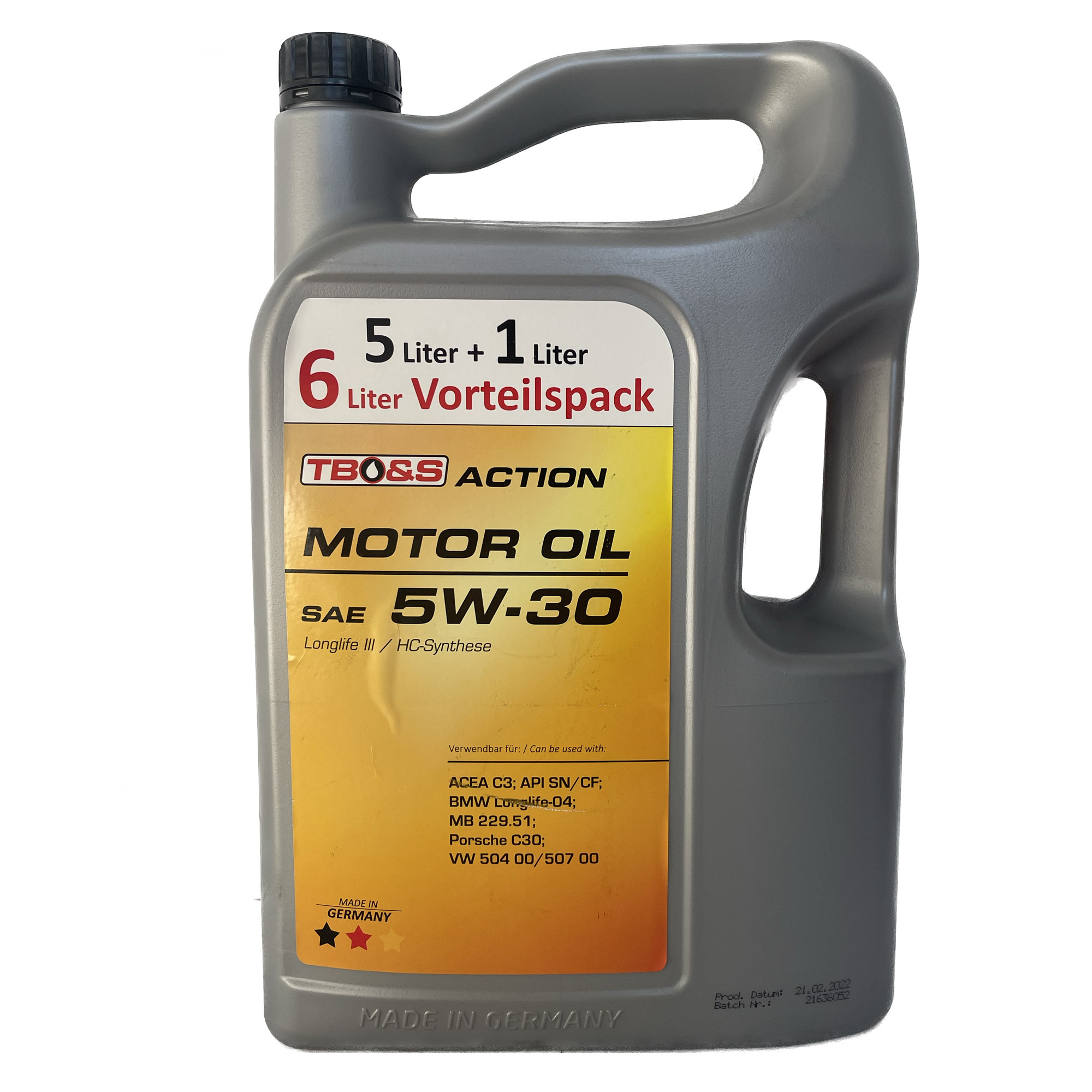 TBO&S CAR MOTOR OIL ACTION SAE 5W-30 Longlife III / HC-Synthese wurde für Pkw Otto- und Dieselmotoren mit Abgasnachbehandlung (Dieselpartikelfilter = DPF), Turboaufladung und verlängertem Wartungsintervall entwickelt. Es basiert auf einer Kombination von HC-Syntheseölen und vollsynthetischen PAO´s (Poly-Alpha-Olefinen), in Kombination mit darauf abgestimmter Additivtechnologie.
